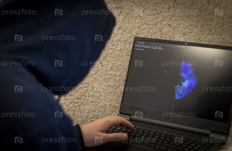 Мужчина выглядел как хакер в капюшоне, сидел перед ноутбуком и писал код. Информационная безопасность