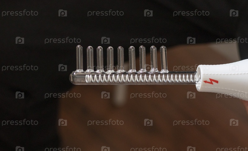 Крупный план высокочастотной расчески для лечения волос и кожи головы. Здравоохранение