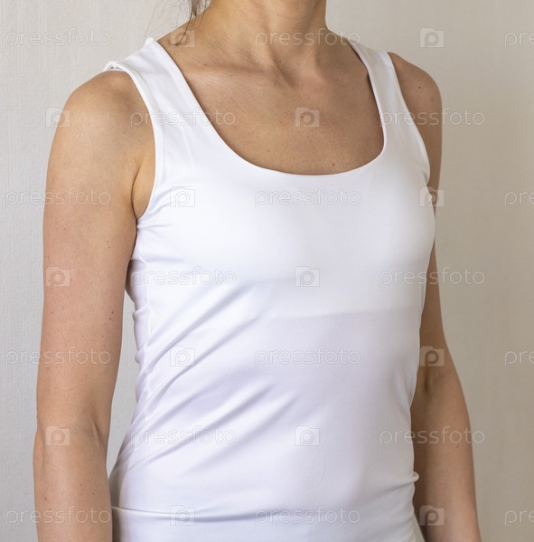 Снимок женщины в белом топе на фоне белой стены. Концепция