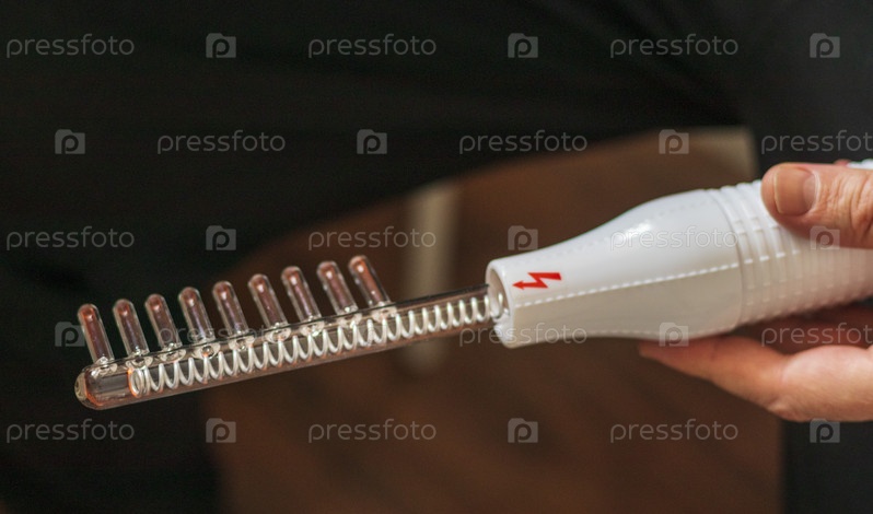 Крупный план высокочастотной расчески для лечения волос и кожи головы. Здравоохранение