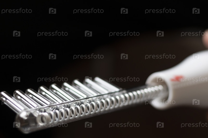 Крупный план высокочастотной расчески для лечения волос и кожи головы. Здравоохранение