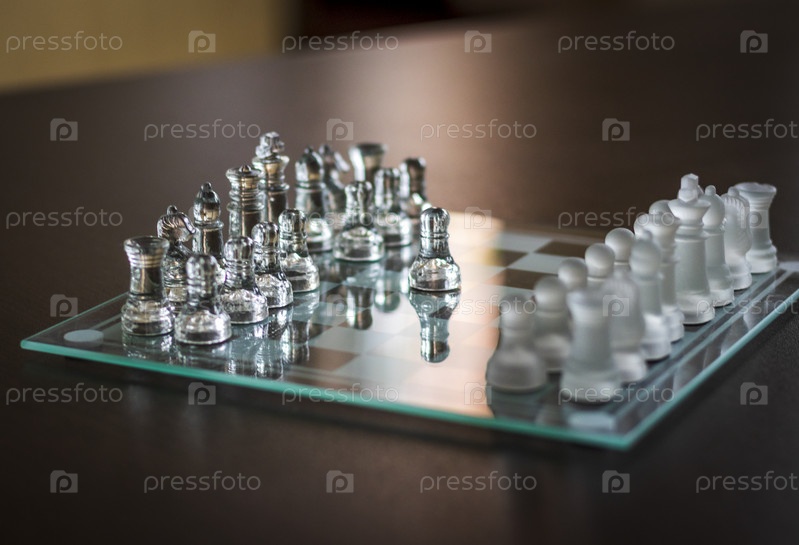 Крупный план шахматной доски из стекла. Виды спорта
