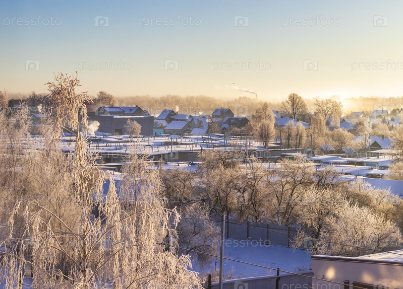 Пейзаж зимней деревни. Природа