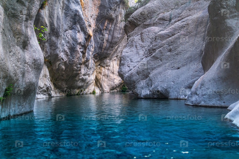 Естественный скалистый каньон с голубой рекой в Гейнюке, Турция