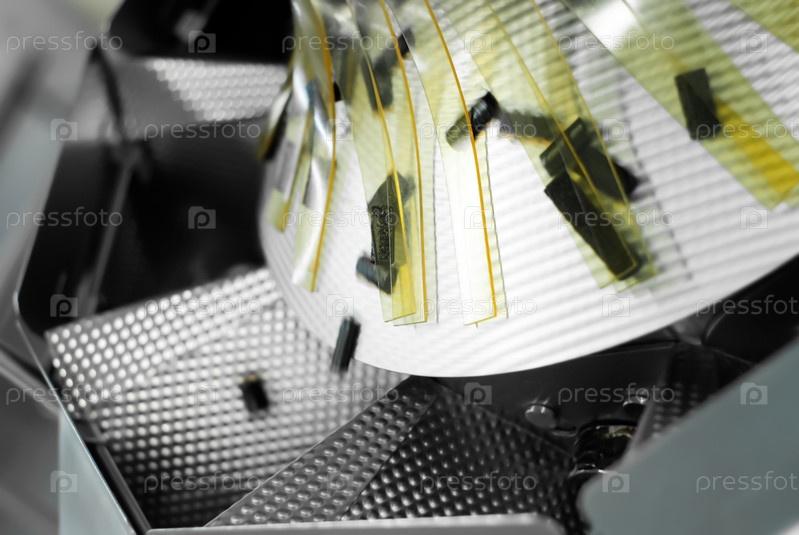 Крупный план вращающейся детали упаковочной машины на кондитерской фабрике