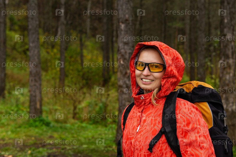 Женщина-путешественница в осеннем лесу
