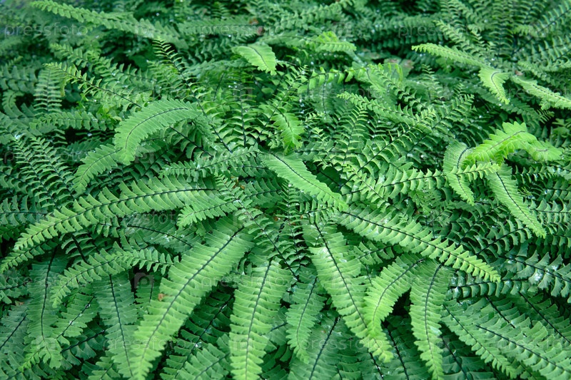 Цветочный фон, зеленые листья, папоротник нефролепис, покрытый росой