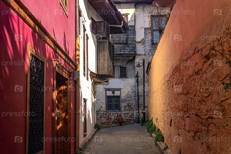 Переулок со старинными домами в историческом центре Антальи, Турция