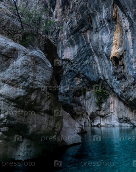 Естественный скалистый каньон с голубой водой в Гейнюке, Турция