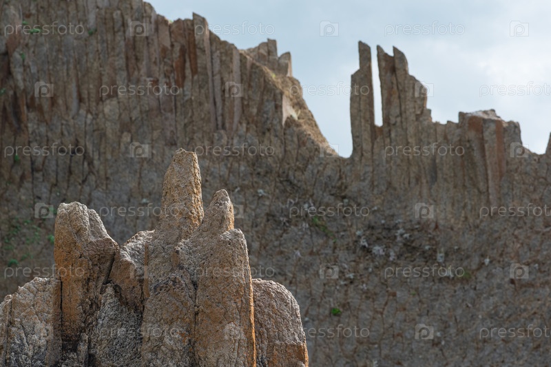 Природный вулканический ландшафт, вершины скал из столбчатого базальта