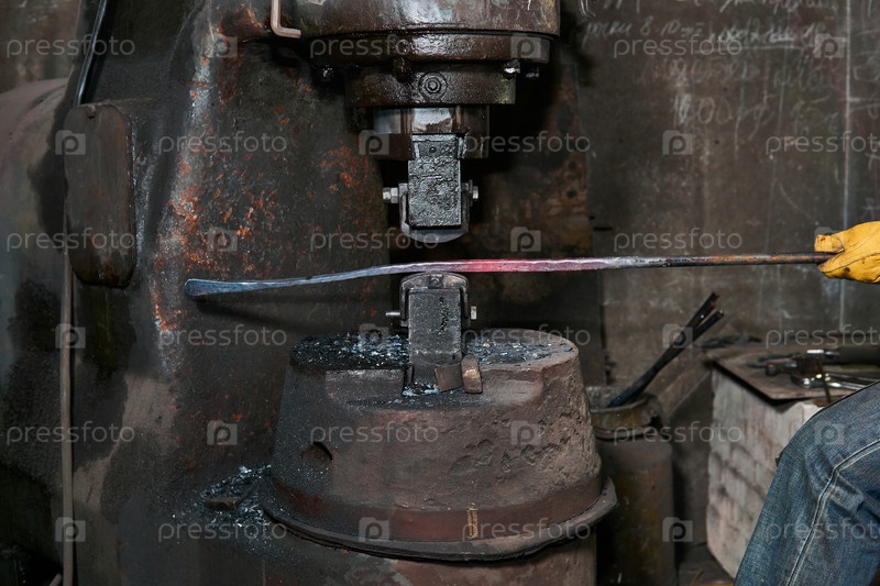 Обработка горячей заготовки кузнечным молотом, крупный план