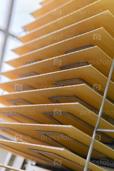 Свежеиспеченные вафельные листы движутся по конвейеру кондитерской фабрики