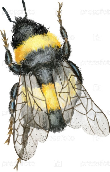 Милый земной шмель. Насекомое для графики на футболках. Акварельная иллюстрация шмеля
