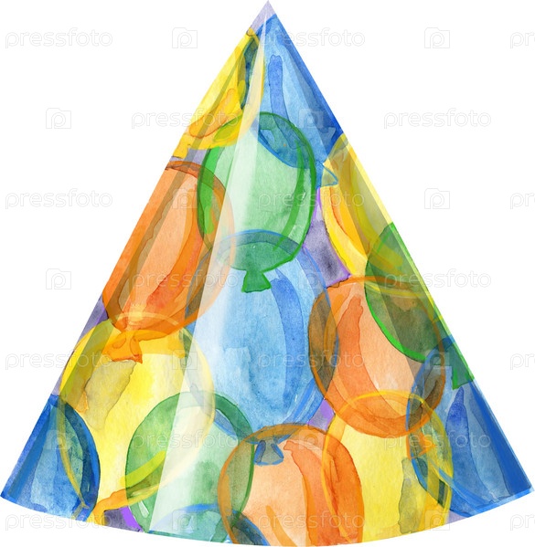 Праздничная шляпа. Акварельная иллюстрация. Элемент дня рождения