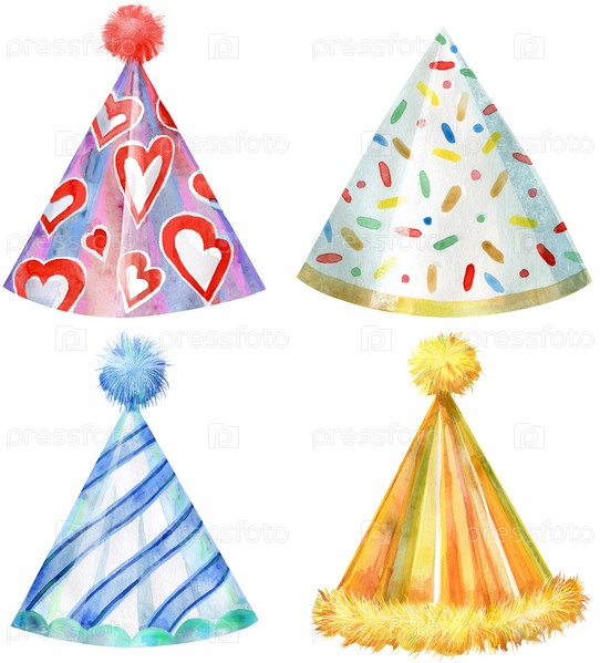 Набор праздничных шляп. Акварельная иллюстрация. Элемент дня рождения