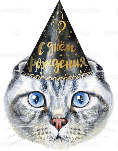 Милый кот. Кот для графики на футболках. Акварельная иллюстрация породы шотландских вислоухих кошек
