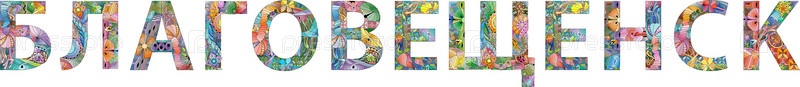 Город Благовещенск в Российской Федерации. векторный декоративный объект zentangle