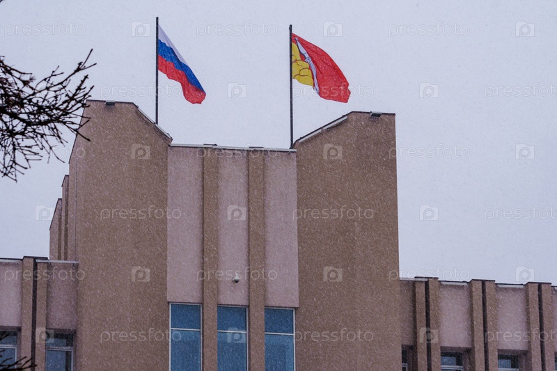 Флаги России и Воронежской области на здании Воронежской областной Думы