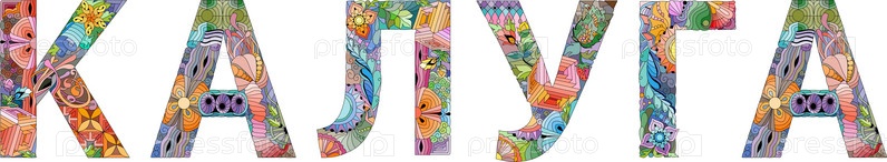 Векторное слово Калуга. Ручная роспись художественного дизайна. Иллюстрация для дизайна футболок, татуировок и других украшений