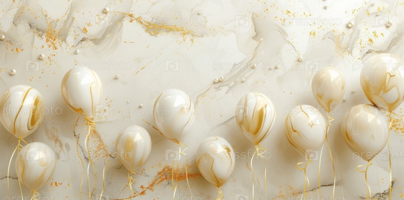 Фон с днем рождения с реалистичным воздушным шаром и золотым конфетти