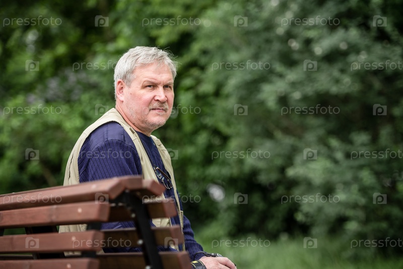 Мужчина сидит на скамейке в городе