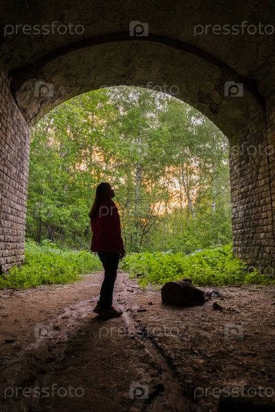 02 июня 2023 г. - Казань, Россия: Девушка идет по темному туннелю к выходу. Свет в конце туннеля