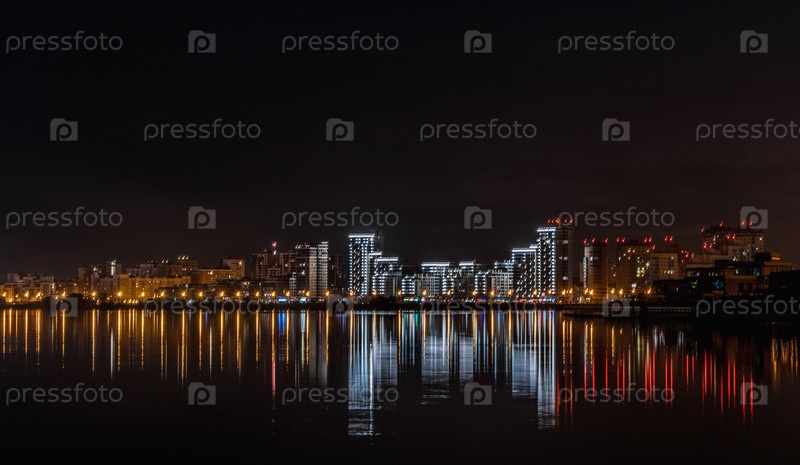 Жилой район Казани, отраженный в водах реки Казанки. Россия
