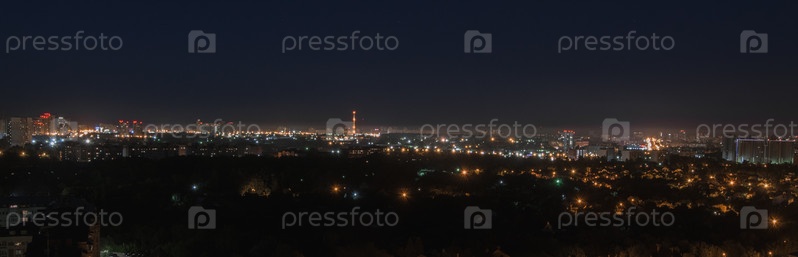 Вид с воздуха на ночной город: Казань, Россия