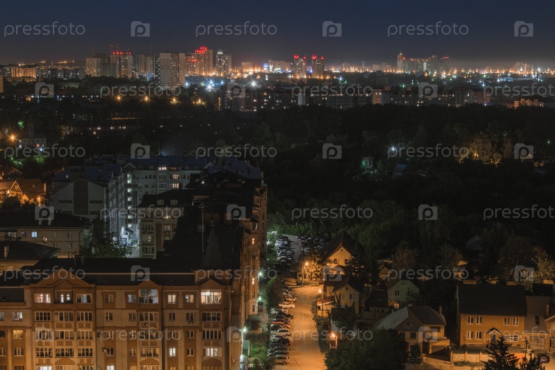 Вид с воздуха на ночной город: Казань, Россия