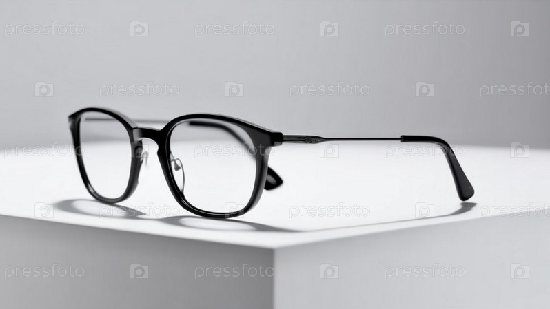 Чисто белый фон, одна пара черных очков выделена на сплошном белом фоне