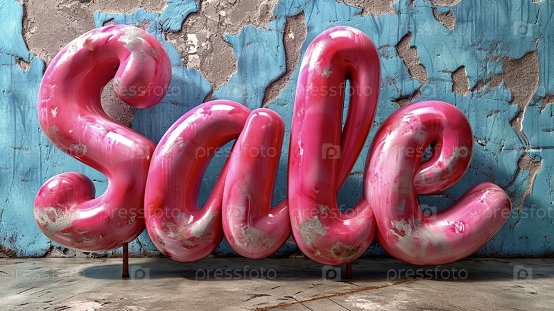 Реалистичные розовые 3D-буквы слов SALE на старом окрашенном светло-синем фоне стены