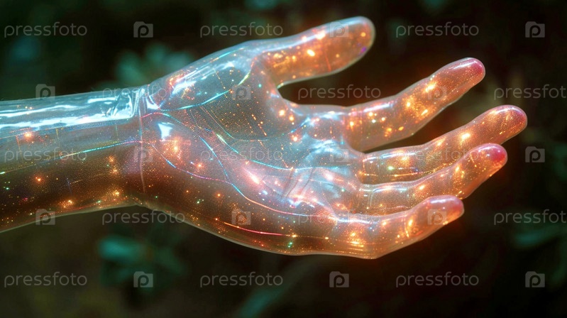 Крупным планом мужская рука ладонью вверх в голографическом цвете
