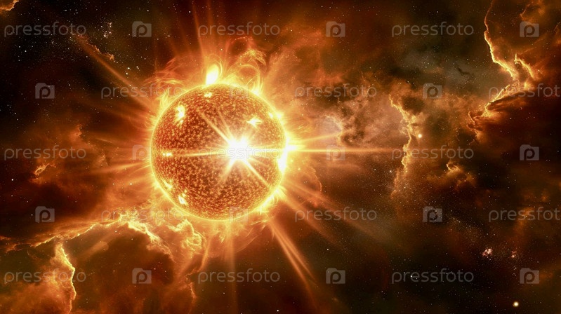 Планета Солнце в космосе, многочисленные вспышки на Солнце