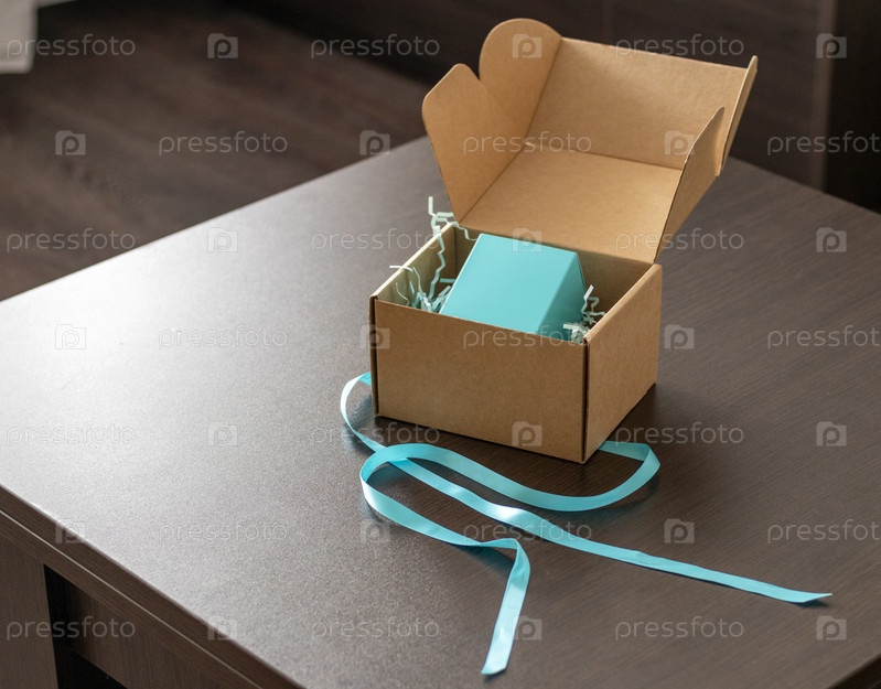 Крупный план развернутой подарочной коробки. Праздник