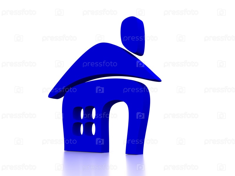 Синий домик на белом фоне