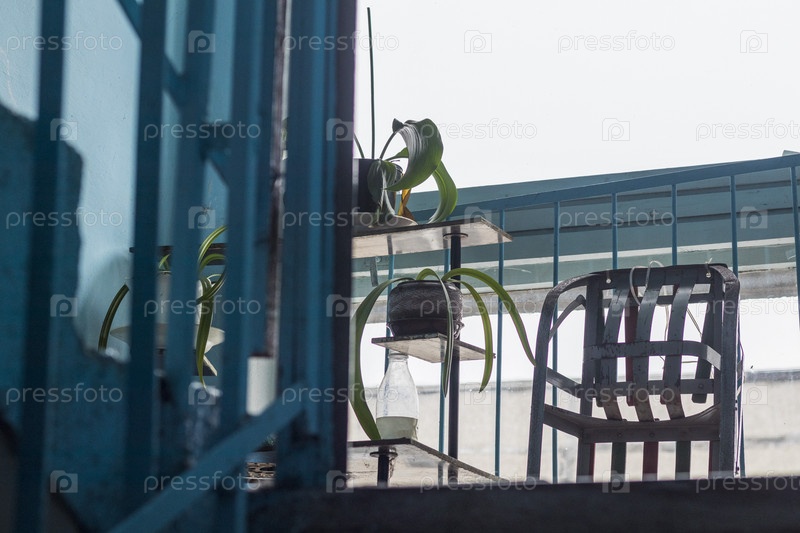 Концептуальный снимок коридора советской эпохи в здании с растениями и санями. Концепция