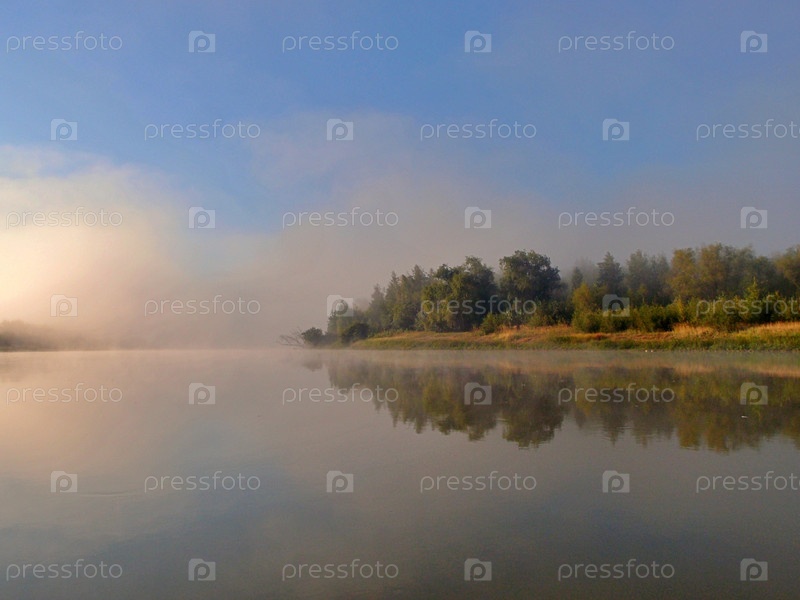 Утренний туман над рекой Иртыш в Омской области
