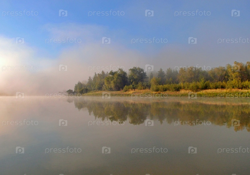 Утренний туман над рекой Иртыш в Омской области