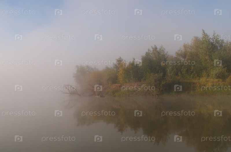 Утренний туман над рекой Иртыш в Омской области