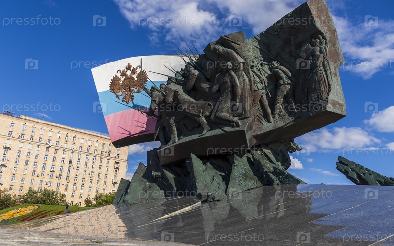 Москва, Россия - 21.07.2021 - Снимок памятников на площади Победы, расположенной на Кутузовском проспекте. История