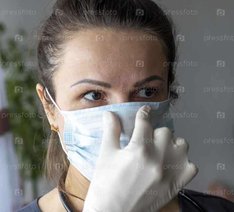 Снимок медсестры в медицинских перчатках с медицинской маской. Здравоохранение