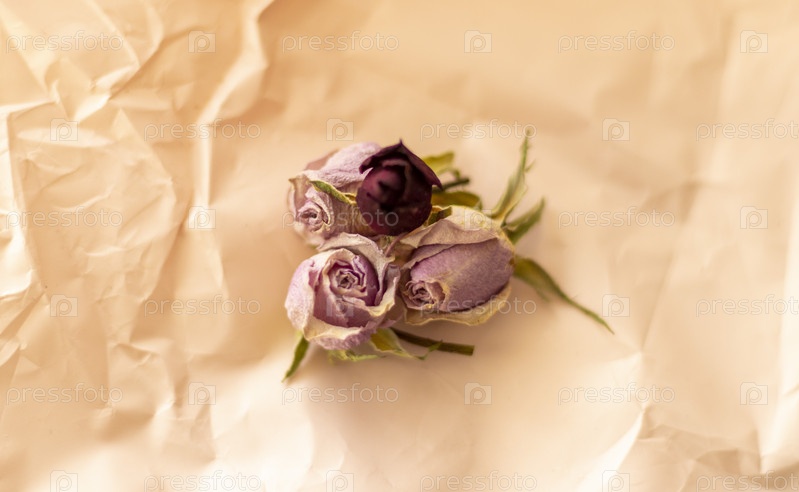 Концептуальный снимок фоновой темы, оберточной бумаги, сушеных роз, других цветов и других композиций. День святого Валентина
