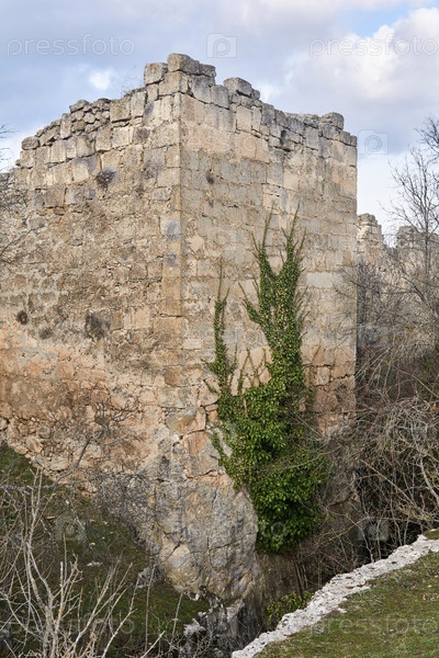 Руины средневековой крепостной башни, увитой плющом