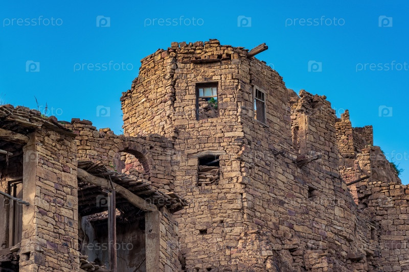 Стены старых каменных домов в обезлюдевшей деревне Гамсутль в Дагестане