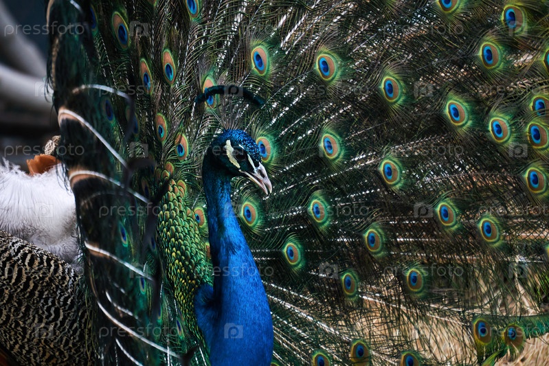 Портрет павлина на фоне собственного хвоста