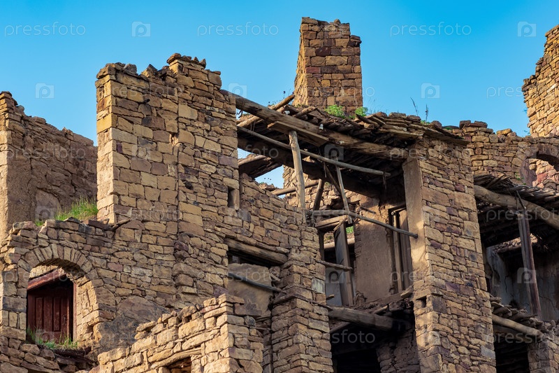 Стены древних каменных домов в деревне-призраке Гамсутль в Дагестане