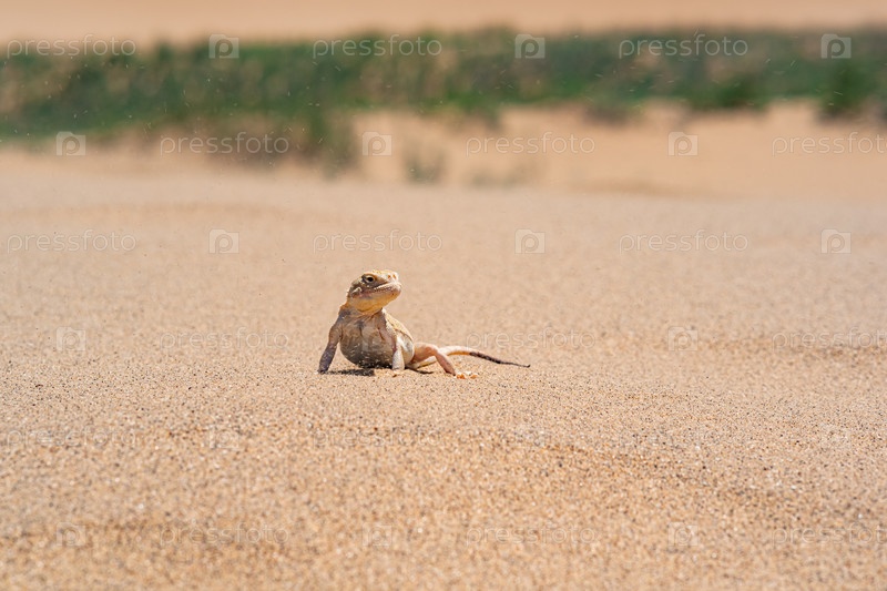 Пустынная ящерица Phrynocephalus mystaceus (тайная лягушоглавая агама) на бархане Сарыкум