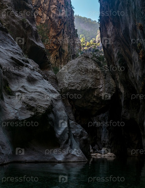 Огромные каменные подвески застряли между двумя скалистыми стенами каньона Гейнюк в Турции