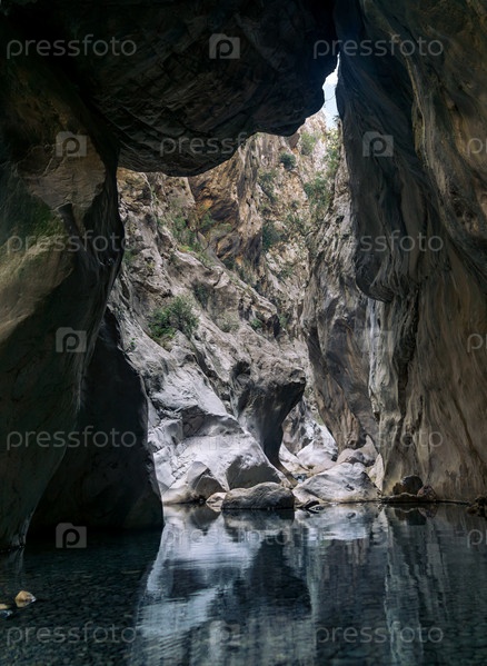Естественный туннель в каньоне с чистой прозрачной рекой