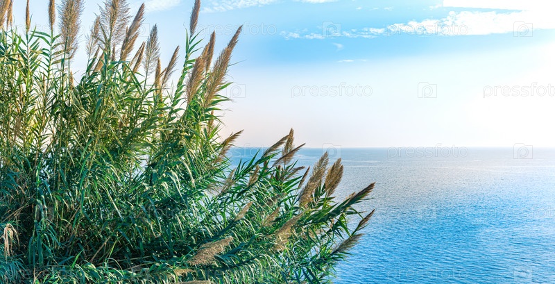 Природный ландшафт с тростником, растущим на скале над морем